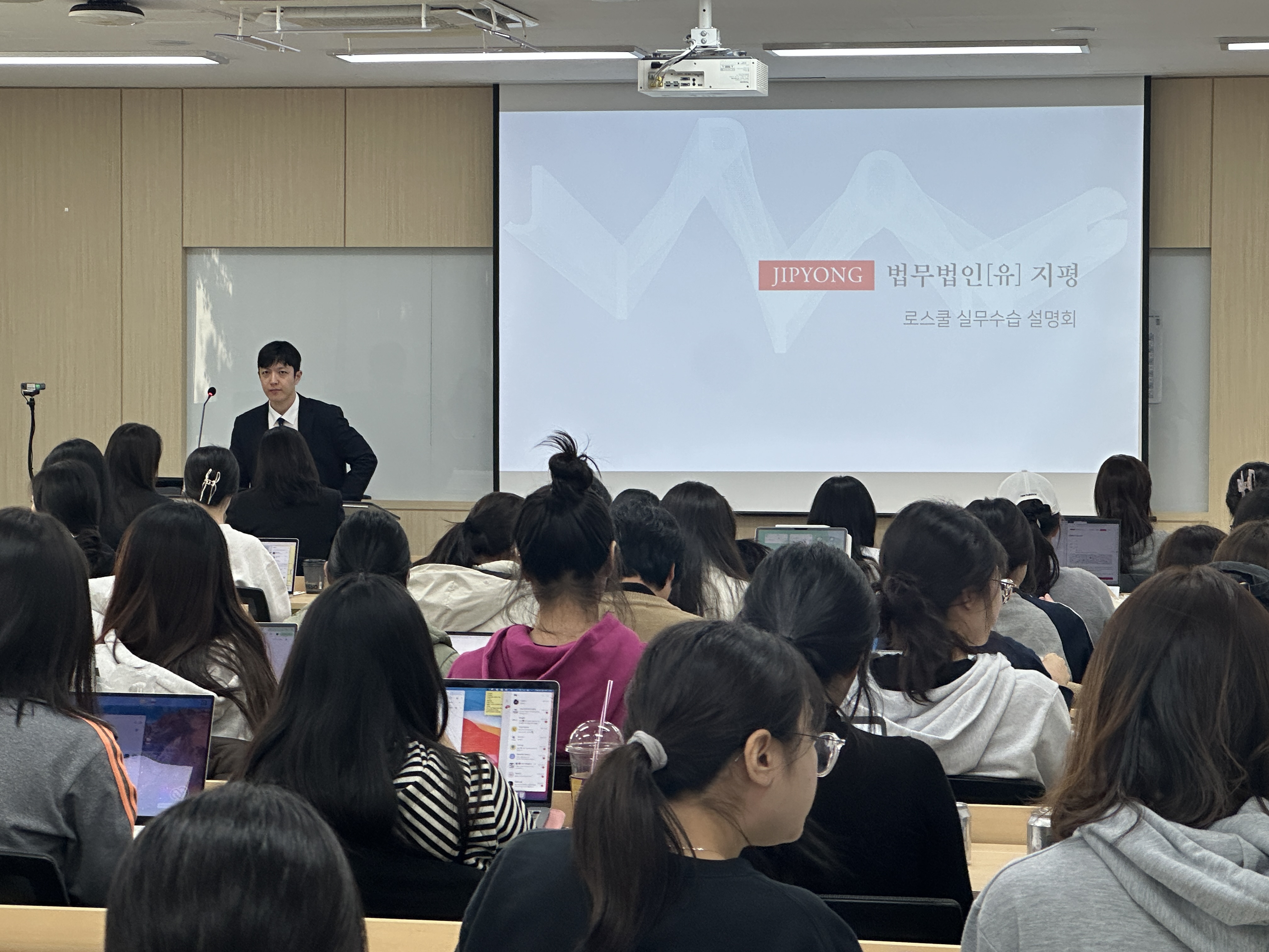 2025학년도 2학기 인재박람회가 11월 3일 법학관 105호에서 법무법인(유) 지평과 함께 진행되었습니다. 설명회에서는 로펌의 주요 업무 분야와 채용 절차, 실무 경험 등에 관한 소개가 이어졌으며, 학생들은 자유로운 질의응답 시간을 통해 취업 관련 궁금증을 해소하고 진로에 대한 유익한 조언을 얻을 수 있었습니다. |