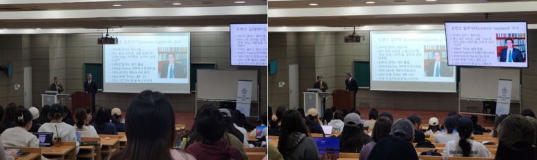 본원은 11월 24일(월), 제2회 Ewha Global Law Academy 특강을 개최하였습니다. 이번 특강에는 이탈리아 밀라노대학교(Università degli Studi di Milano)의 Lorenzo Gagliardi 교수를 연사로 초청하여, “A brief overview on the history of Italian law from the Middle Ages to the codification”을 주제로 중세부터 19세기 입법화에 이르기까지 이탈리아 법의 역사적 전개를 소개하였습니다. 특강은 영어로 진행되었으며, 이를 통해 학생들은 유럽 대륙법 전통에 대한 이해를 넓히고 비교법적 시각을 함양할 수 있을 것으로 기대됩니다. 본원은 앞으로도 EGLA 프로그램을 통해 국제적 학문 교류와 글로벌 법학 교육을 지속적으로 확대해 나갈 계획입니다. |
