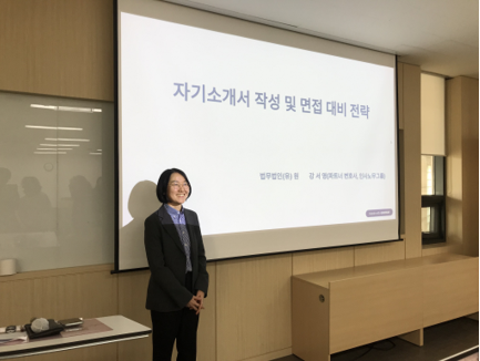 11월 7일 법학관 105호에서 법무법인 원의 강서영 변호사(이화여대 법전원 3기)를 초청한 자기소개서 특강이 진행되었습니다. 이번 특강에서는 로펌 지원 시 필수적인 자기소개서 작성 요령과 실무적인 조언이 이어졌습니다. 학생들은 실제 채용 과정에서 중요하게 평가되는 요소들에 대해 구체적인 피드백을 받으며, 취업 준비에 실질적인 도움을 얻을 수 있었습니다. |